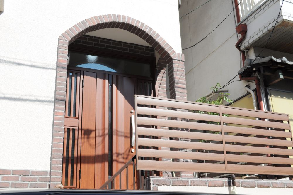 シャッターや手摺、外壁を塗り替えタイルブロックを貼り、機能門柱へ変更しました。